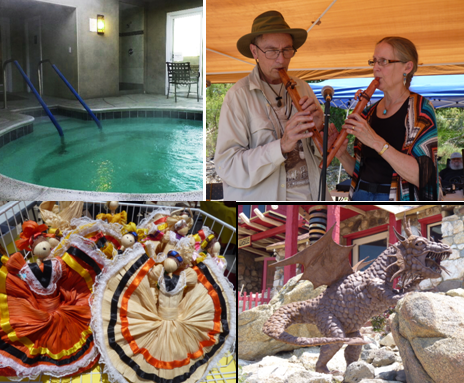 rdwatchers, vintage car clubs, motorcyclists and other tourists who come to enjoy scenic views, breathe our clean air, revel in the quiet of nature, recharge in our hot springs and enjoy dark skies. A new website, www.gosandiegobackcountry.org, has guides to activities from road trips to rockclimbing, stargazing to geo-caching, art destinations and more. (Photo, left, shows recent revitalization projects and festivals in Jacumba Hot Springs.)