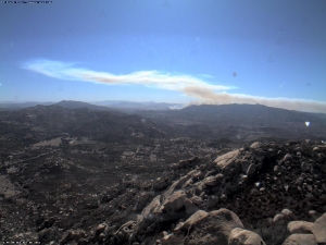 November 2, 2011 (San Diego's East County) -- A large fire in Mexico now poses a potential threat to the U.S., Cal-Fire radio indicates. The fire, which is around 600 acres, is putting up a large plume of smoke visible across most of southeast San Diego County. The fire is burning about one mile south of the border.