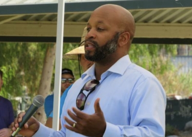 Photo, left: San Diego County Office of Homeless Solutions Director Omar Passons addresses the crowd at the SVCA first anniversary celebration. Photo courtesy IPS.