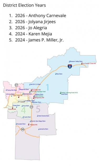 February 21, 2024 (El Cajon)— A resignation letter from Trustee Jo Alegria dated February 15 was read aloud this week at the Cajon Valley Union School District board meeting by board president Jim Miller.