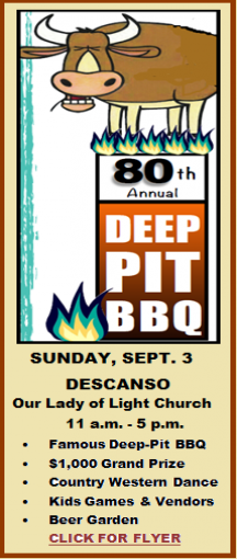 August 9, 2017 (Descanso) --Ready for a nostalgic mountain community bash on Labor Day weekend? Our Lady of Light Catholic Church in Descanso invites you to their 80th annual deep pit barbecue.