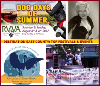 August 2, 2017 (San Diego’s East County) -- This week’s Destination East County includes the Dog Days of Summer at Ramona wineries, a Sip of Julian, Cajon Classic Cruises, plus outdoor concerts in Lemon Grove, Santee and El Cajon.
