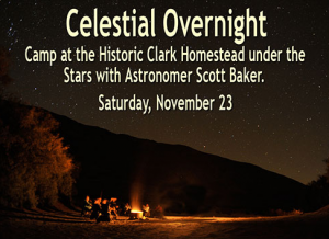 - Camp Beneath the Stars with Astronomer Scott Baker, Sat, November 23: Fall camping is idyllic in the Anza-Borrego Desert, especially in the company of an astronomer and his 14" telescope. Chuck wagon dinner will also be provided.