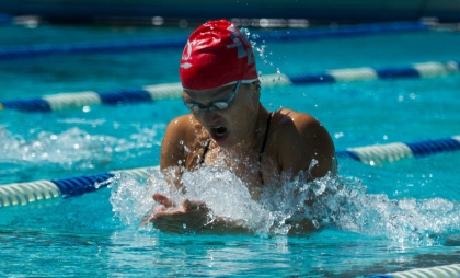 Photo: Martina Marks won both the 500 and 1000 freestyle races in Friday's dual meet at Oregon State. Courtesy goaztecs.com