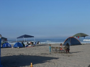 April 20, 2015 (Baja, Mexico)--Located as an exit off the toll road, or Cuota, is La Salina at Km 73. Two exits after crossing the bridge with the estuary to the left as you travel south from Rosarito is a public beach with palapas to the right. It is Easter weekend which traditionally starts the official camping on the beaches, no matter the weather, as Mexicali, Tijuana and Tecate empty out for all the free camping in this part of Baja. Here the fee is $500 pesos, around $4 at the current exchange rate, per vehicle which accounts for this beach not being overcrowded.