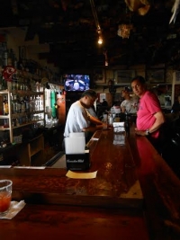 The food is cantina style and most of it is good, traditional Mexican fare with breakfast being my favorite so far. Most places have very good breakfast, and I had an amazing Quesadilla that contained cheese, jalapenos, olives and avocado with the traditional crema, guacamole and freshly made tomatillo salsa for garnishes. Easily enough for two people or two meals it is a good value at $7.00. I judge a bar down here by their Bloody Marys and this one is pretty good and costs $4.00.