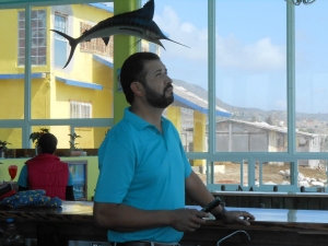 Yesterday was the grand opening of the new space built by Nicolas of two story splendor, framing the stunning scenery and spilling plenty of light on everyone and everything inside, even on a rainy day in spring. The floors are etched with motifs of dolphins, a compass and whatever else was fancied at the moment of design. About a thousand people showed up to see and be seen the first weekend. Nicolas Santos had forty two people working the first day and valet parking. His brother, JC works the bar along with Tony and at least one other bartender during busy times.