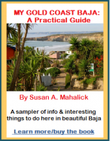 Susan A. Mahalick, having grown up in Middlesex, New Jersey, has written an indispensable primer and guide for those considering visiting or an extended stay in Mexico; My Gold Coast: Baja A Practical Guide 2nd Edition. The author states: “A sampler of information and interesting things to do in this part of Baja. This book represents 11 years of living and thriving in a wonderful climate with a culture that is both delightful and welcoming to people from other countries It is not just about the low cost of living, it is about an experience of community with fellow expatriates and locals alike. This is what makes this place so special.”