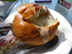 Happy hour features some delectable specials, such as grilled fish taco ($2.95), coconut shrimp ($7.95) and crispy brussel sprouts ($4.95). Other good options include crab-stuffed mushrooms, calamari, and the irresistible (though not a happy hour item) Mama Ghio’s famous chowder, served in a crusty sourdough bread bowl.