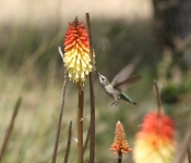 Although there have been sightings of 10 different species of Hummingbirds in San Diego County, our resident Hummingbirds are the Black-chinned Hummingbird, Costa’s Hummingbird, and, probably the most commonly seen Hummingbird here in the East County, Anna’s Hummingbird. The Hummingbirds’ range is strictly throughout North and South America. They fascinated the first Europeans to arrive on the continent. Christopher Columbus wrote about them and many wondered if they were a cross between a bird and an insect – at one point being called “flybirds”. Later, their feathers became fashionable ornaments in Europe (a practice that has thankfully fallen out of favor).