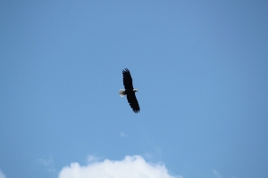 The bald eagle is one of North America's largest raptors with its wingspan stretching as wide as 8 feet. It lives on coasts, lakes and rivers from Alaska to Northern Mexico, migrating south in the winter only if necessary.
