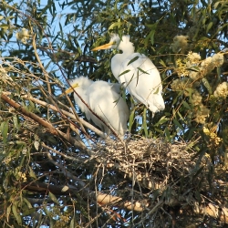 July 24, 2013 (San Diego’s East County) – Bird nests can be hard to observe. We usually just stumble across them out in nature. One place you can always see a large variety of Egret and Heron nests is in the Eucalyptus trees at Lindo Lake.