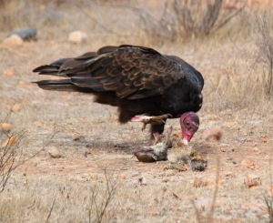 The Turkey Vulture is one of the most remarkable animals in nature. It is a scavenger and feeds almost exclusively on carrion. The Turkey Vulture can indentify if the carcass is too far gone to eat and not suitable for consumption. Having said that, at the same time, vultures have an immune system that allows them to eat almost anything – while feeding on old, smelly, rotting carcasses, they do so without contracting botulism, anthrax, cholera, or salmonella. To prevent contracting any parasites while feeding, their heads contain no feathers.