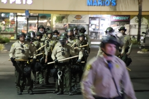 Photo, left by Henri Migala: Sheriff's officers cleared those on both sides of a contentious protest Monday night in Santee