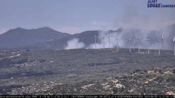 SDG&E's camera indicates the fire is burning close to the Campo Wind Farm.