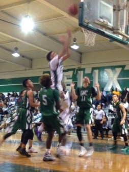 March 8, 2017 (La Mesa) - In Round I of the Division IV CIF boys basketball playoffs, the Highlanders of Helix faced another set of Highlanders, those from Granada Hills Charter in Granada Hills, a city just north of Santa Monica. Both team’s colors are green and white. Both teams’ mascot is a highlander. Both are charter schools.