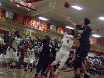 McKan finally gave the Monarchs the lead again on a free throw in the second quarter, but a one-point lead wasn’t enough to stop the attack from Guajome Park. The Frogs scored four points in 10 seconds to take their first lead of the game. The Monarchs fought back and senior Deondre McHayle’s free throw tied the game and a last-minute jumper gave the Monarchs an 18-16 lead at the half.