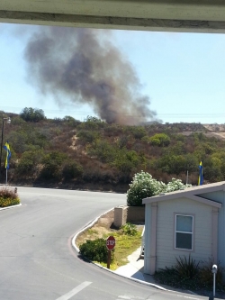ECM readers and members of the Brush Fire Partyline on Facebook have indicated the fire began near the Vons Supermarket, close to a mobilehome park and a tent camp. Additional resources have been requested.
