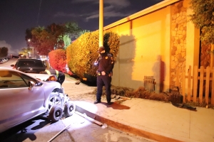 March 10, 2021(Casa de Oro) -- A car travelling westbound on State Route 94 in Spring Valley lost control around 8:30 tonight and veered off the highway and into a Casa de Oro neighborhood below. Described on the CHP incident page as a silver Mitsubishi, the vehicle tumbled down a hill, crashed through a fence and continued across the intersection of South Barcelona Street and Buena Vista Drive, into the grounds of an apartment building at 9938 Buena Vista Dr. The vehicle plowed through a fence and hedges at the apartments but did not damage the building.