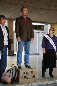 Representatives from Occupy San Diego proceeded to go to the City Clerk to file the ballot proposal that would repeal free speech restrictions imposed a century ago. They also tried to talk to Mayor Sanders, with Martha Sullivan filling out a written request. Occupy San Diego has tried three previous times to see the Mayor, with no luck.