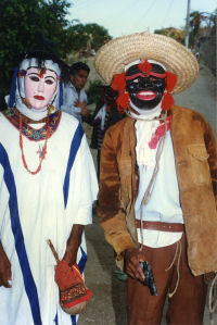 Perhaps the most profound observation made by Lewis in her book as it regards San Nicolas, is the two-day ritual performance there for Independence Day (September 15) called La America or Los Apaches. Lewis states: "In San Nicolas, La America follows the template of a conquest play, but it is really about reconquest (independence) as Indians take territory back from Spaniards, thereby freeing the Mexican nation from its captors. On the surface the play seems straightforward: Indians defeat Spaniards and Mexico becomes an independent nation. But it also contains a hidden transcript as morenos align with the Indian victors and thus work themselves into a nation that has historically excluded them. It is now whites who are now written out of the nation as black Indians take its center. Rather than highlightening the tensions between marginalized peoples and a conflated nation-state (Cohen 1994:150), La America assimilates blackness to Indiananess as it effects a split between the nation, feminized and black Indian, and the state, which is masculinized and white. Thus the state and the nation are raced, gendered, and split apart."
