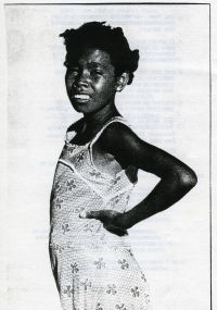A picture of a La Cuculusta (The Kinky-Haired Girl) that Cuaji culture workers produced for the First Traditional fair in San Nicolas in 1998, which outsiders organized, insult community members' sensibilities ("She hardly looks like anyone here," remarks one of the local inhabitants; while claiming that she appeared to have "corn dough in her teeth"). Perhaps this is where the notion of Chocolate and Corn Flour came from. Also, a further denigration of the black race, universally.
