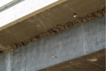 In the absence of cliffs, the swallows sometimes place their muddy nests on the under sides of bridges as shown here under the Riverside Drive bridge in Lakeside along the San Diego River.