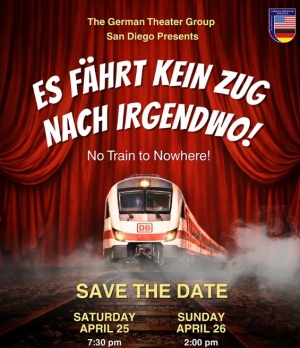 March 12, 2026 (El Cajon) -- The German Theater Group San Diego has announced its 2026 production, a German-language cabaret titled "Es fährt kein Zug nach irgendwo" (There is no train to anywhere), scheduled for a two-show run this April.