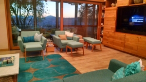 The home also has San Diego County’s first onsite wastewater treatment permit and the first permit to use all collected rainwater for all indoor water use. In addition, it strives for eventual grid-disconnection through utilization of batter power, solar photovoltaic panels, and a 45-foot wind turbine. From controllable lighting to insulated windows, energy-efficient appliances and organic gardens in raised beds, the home is as sustainable as currently possible under existing technology.
