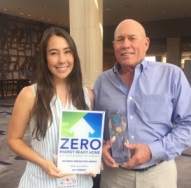 Jeff Adams, Alliance Green Building’s president (photo, right, with Katie Teare), says that in building this home, he wanted to build a “pilgrimage site that demonstrates the viability of a better future” and demonstrate what is possible in our region. In addition to the national federal award, the home is also the first LEED certified, net-zero home and passive solar house in Southern California, with windows situated to maximize energy from the sun.