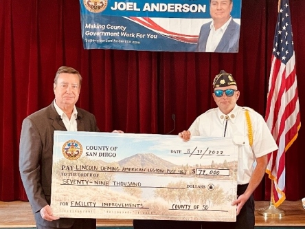To begin the meeting, Supervisor Anderson mentioned that he had awarded $559,764 to Julian organizations from 2021 to now, and then presented American Legion Post 468 a check for $79,000 for facilities improvement.