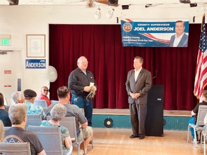August 31, 2022 (Julian) -- Joel Anderson, County Supervisor for District 2, held a Community Coffee Town Hall meeting in Julian on August 11. Approximately 100 residents filled Julian’s historic town hall to discuss issues of concern, ranging from fire safety and road improvements to animal control and the exceptionally high cost of fire insurance, and many other matters of concern to residents.