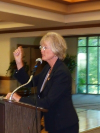 Anderson’s opponent, teacher Paul Clay, did not attend last night’s meeting but has stated publicly that he opposes Powerlink. Assembly candidate Mark Hanson, who lost his Lakeside home in the Cedar Fire, was also unable to attend due to a schedule conflict. Hanson opposes the proposed Powerlink route through the Cleveland National Forest and other fire-prone communities, such as Alpine and Lakeside.