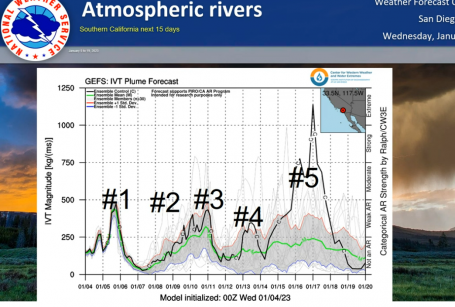 But that’s just the beginning – since five atmospheric rivers are slated to hit Southern California through January 9 – and the fifth is forecast to be the most intense.