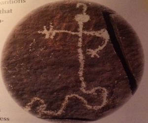 The book is fraught with pictures of various types of rock art, or petroglyps (rock etchings) it also has geolyph or rock-scrape.
