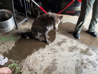 January 17, 2023 (Ramona) - County Animal Services officers rescued an 11-year-old dog from an oil-filled mechanic’s well inside a private garage in Ramona. The owner of the shop called the County Department of Animal Services the morning of Jan. 17 saying a dog was trapped.