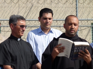 Father Noel led prayers and a second priest read from the Bible. “I was a stranger and you took me in…I was in prison and you came to me.” The religious leaders asked God to help those who are detained after already suffering so much.
