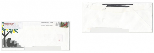 Ofield clarified, "We ran out of our own film envelopes and used two of the ancient Friends envelopes from 2003 and crossed out the address." She added that this version of stationery was not used by Friends and she had a few samples for the historical record. She added that addresses for her mailing came from other sources,  not the nonprofit list.