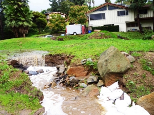 On Mt. Helix, homeowners contended with newly formed waterfalls cascading off mountainsides and streams overflowing, transforming front yards into ponds and flowing waterways. Others discovered leaking roofs and flooded rooms from run-off.