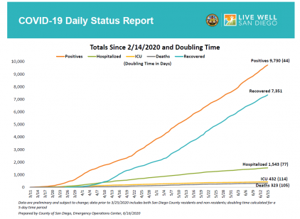 June 17, 2020 (San Diego) – San Diego County public health officials have voiced concern after four outbreaks of COVID-19 in a week have been traced to community settings including churches, restaurants and home gatherings.  Dr. Wilma Wooten, the County’s public health officer, reminds the public that if seven or more outbreaks occur in a week, the County would need to take protective measures,