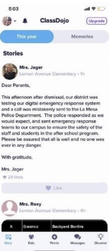 The principal of Lemon Avenue Elementary, Natalie Jager, sent a message to parents with this explanation: “This afternoon after dismissal, our digital emergency response systems and a call was mistakenly sent to the La Mesa Police Department. The police responded as we would expect, and sent emergency response teams to our campus to ensure the safety of the staff and students in the after school program. Please be assured that all is welland no one was ever in any danger.”
