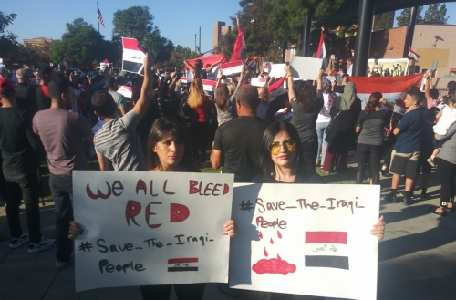 Around 450 protesters gathered in El Cajon, home to tens of thousands of Iraqi immigrants and refugees. The local protesters stand in solidarity with demonstrators in Iraq and decried the violent crackdowns on protesters in Iraq that have injured between 600 and 1,200 people, killing 20 to 30 or more.