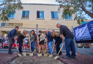 La Mesa's Downtown District Sign is coming soon. Among those at the Feb. 3 groundbreaking ceremony were, from left to right: Greg Humora, La Mesa City Manager; Pam Rader, La Mesa Village Association Board of Directors; Lauren Cazares, La Mesa Vice Mayor; Laura Lothian, La Mesa City Councilmember; John Bedlion, LMVA Board of Directors/Owner Johnny B's; Misty Thompson, La Mesa Park & Recreation Foundation Executive Director; Tony Gaipa, La Mesa District Sign committee member. CeCe Canton Photography