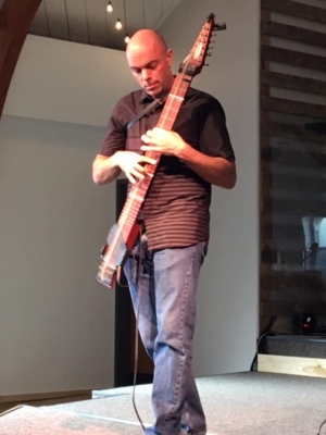 The Chapman Stick looks like a wide guitar neck--without the guitar body. The Chapman Stick usually has 12 strings, six guitar strings and six bass strings. The strings are "tapped" rather than plucked. Griesgraber was proficient on electric guitar before deciding to master the Chapman Stick. He also uses some of the electronics favored by musicians playing the electric guitar including the "looper" and synth pedals that give him more sonic choices.