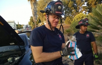 September 19, 2017 (San Diego’s East County) -- Adrienne Koroly had his Lexus parked outside his home in Morena Valley. On Saturday morning , he drove from Morena Valley to his parents home on San Vicente Blvd in the Casa De Oro area of Spring Valley. When he stepped out, he heard meowing—not a typical engine purr.