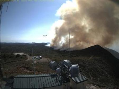 photo below was sent in by Lisa Elkins-Goodman and taken from an HPWREN webcam run by UCSD showing the very large air tanker brought in to battle the blaze.