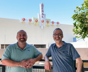 Photo, left: Director and Executive Producer Daniel Florenzano (L) and Producer Scott Oram prepare for a July 11 special screening of Bloody Anniversary at Parkway Plaza's Regal Cinema in El Cajon. Photo by Michael Howard