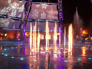 Now, when shopping, visitors are treated to views of excited skaters making their way around the cool, white ice rink, skating to the sounds of favorite Christmas melodies. Bedecked at one end with the traditional giant, decorated Christmas tree, the ice rink this year also has festive café lights. One of the decorative creeks nicely reflects the tree as you walk in from the east side of the Center.