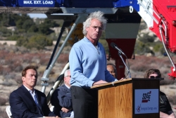 Governor Schwarzenegger, who was greeted by protesters waving signs, honking and chanting as he was driven into the reception, had this to say. “Now I know that there are some people not happy about this, the protesters.” He said he understood concerns for protecting the environment and sensitive species such as bighorn sheep, but said project backers have met with environmentalists to address such concerns. He concluded, “This will reduce greenhouse gases by one million tons a year. You have to think about the bigger picture.”