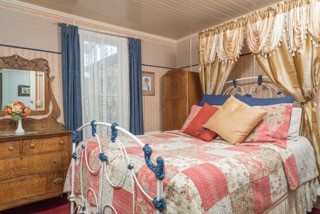 Rooms are small but beautifully appointed with hand-made quilts, historic photos, comfortable furnishing and lovely bathrooms. The property also has guest cottages and colorful gardens.
